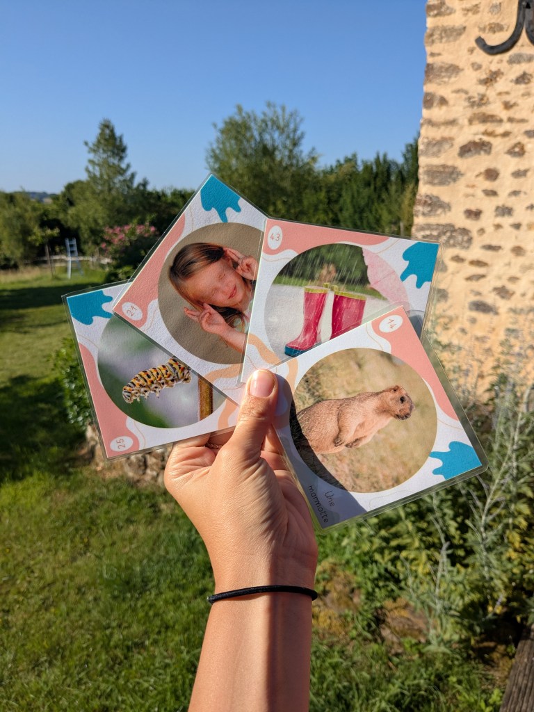 – En bonus : 144 cartes illustrant les mots de vocabulaire sélectionnés et répertoriés dans le tableau. (Les mots illustrés par les cartes sont plutôt à destination d’enfants de petite et moyenne section. Des mots plus complexes ainsi que des expressions sont répertoriés dans le tableau mais ne sont pas illustrés)
