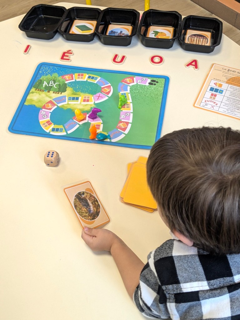 Au cours du mois de novembre, en voyant mes élèves prendre de plus en plus de plaisir à découvrir les sons des lettres, j’ai eu envie de créer un jeu de plateau qui me permettrait de réviser les sons étudiés de façon ludique. Je n’avais pas envie de multiplier les jeux, en en ayant un pour les sons voyelles, puis un autre pour certaines consonnes, etc.